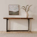 The Bent collection puts nature’s craft front and center. Made of beautiful solid acacia wood, rustic live edge detailing shows off the unique knots and whorls of the wood. This console table’s acacia tabletop rests on a tall, sturdy iron frame, providing artistic flair for your entryway or living space. Pair with other pieces in the Bent collection for a complete look.