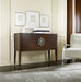 Like a stunning broach on a stylish lapel, the jewelry-like, generously-scaled hardware is striking again the warm walnut veneers of the Medallion Console.