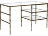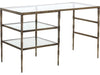 This incredible piece from our Muze collection will bring excitement to any workspace. Inspired by global travels, this desk features a unique hand-hammered steel frame with an antique brass finish. A clear glass top and two shelves provide ample storage. Made in India: With refined craftsmanship, this design was brought to life by skilled local artisans. By nature, these materials develop unique imperfections such as fissures, markings and colour variations for a truly one-of-a-kind piece.