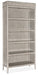 With a soft modern and casual appeal, the Burnham Bookcase is crafted of Alder Veneers with knots in a Grey Mink finish accentuated by a tactile veneer pattern on the back panel and slender tapered legs. Featuring four fixed wood-framed glass shelves, the bookcase has a puck light in the top with a 3-intensity touch switch on the right pilaster.