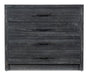 - Finish: Black wood finish with wood grain showing through. Metal bar pulls in charcoal finish.
