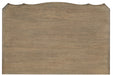 - Finish: A wire-brushed, artisan, light natural finish with reclaimed character is on exotic beautiful Acacia wood, known for its rustic charm, tactile hand, knots and color variations in serene organic hues of gray, rose and natural. Distressing includes wire brushing, rock, wormholes and scratch antiquing. Burnished bronze hardware.