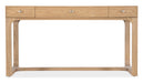 A sleek silhouette combines with an organic light natural pecan finish over Pecan Veneers to create a simple chic design. The Documents Desk has 3 drawers. The center drawer has a drop-front for keyboard use and the left and right drawers have removable dividers and a writing slide and drawer organizer that can be used in either drawer. Pewter oval knobs add a finishing touch.