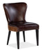 Swanky yet earthy and inviting, the Kale Accent Chair has a tight seat and back, with the seat and inside back covered in the Debonair Espresso aniline top grain leather, while the outside back is covered in the Dark Brindle hair on hide. Brass nailhead trim and dark wood legs complete the look.