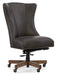 Chic in a clean and simple silhouette, the armless Lynn Executive Swivel Tilt Chair with casters flexes while you work to give you mobility to swivel, tilt and roll. Covered in the Caruso Naples finished top-grain leather, the Lynn features vertical channels on the back, shaped wings and nailhead trim down the sides and seat. The base is in a Chestnut wood finish.
