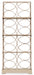 Transform your home office or living space with the Flourish Etagere from the Melange collection. This transitional bookcase features the Polished Limestone finish on oak veneers, an open geometric circle motif, and an angled frame for a modern aesthetic. With three metal-framed glass shelves and a sturdy wood base, it’s perfect for displaying books, decor, or collectibles. The open back and side design create an airy feel, making it an excellent choice as a decorative room divider.