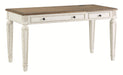 Elevating the art of traditional cottage styling, this desk is your heavenly home office realized. Its antiqued two-tone aesthetic blends a chipped white with a distressed wood tone top for added charm. Framed drawer fronts, decorative corbels and elegantly turned and tapered legs add refinement, while dark bronze-tone knobs lend a classic touch. And this desk is also built for productivity. A spring lift top raises the surface to a comfortable standing position, while the built-in power supply and dual USB ports keep your devices close at hand and ready to go.