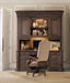 Class and comfort come together in an impassioned marriage of casual elegance in the Rhapsody Tilt Swivel Chair, combining a top grain leather seat with a fabric back in the soft neutral Aurora Ecru color. The walnut-colored reclaimed rustic finish adds the final touch of laid-back luxury. Features a tilt swivel mechanism with a pneumatic gas lift and casters.