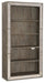Storage has never been so stylish as with the Rustic Glam bookcase, featuring a soft white oak veneer finish with shimmery eglomise accents. Features two wood-framed glass shelves, one adjustable wood shelf and one fixed shelf (3rd from the top). There’s one three-intensity touch switch-activated light. Anti-tip hardware included.