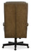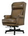 Bring a traditional touch to your workspace with the Tucker Executive Swivel Tilt Chair. This chair, finished in espresso brown with black nickel casters, is upholstered in semi-aniline top grain leather, offering both durability and comfort. Its winged bustle-style headrest and cut-back roll arms enhance its classic look, while the high-density foam provides lasting comfort for any home office.