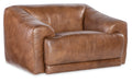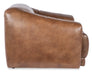 Plush, inviting and generously scaled, the Fleetwood Chair has wide and welcoming curved arms, a t-shaped tight seat and is covered in the sink-in-me soft aniline top grain leather Taupe. The chair measures 54.5 inches wide by 43 inches deep.