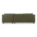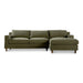 The Hutton sectional features soft-to-the-touch chenille fabric constructed from 100% polyester treated with C0 performance technology. A traditional higher back and tapered dark wood legs nod to mid-century aesthetics while providing contemporary coziness as a plush feather topper ensures unparalleled comfort.