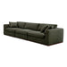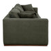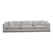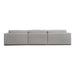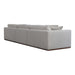 The Rue modular sectional features a generous 70% feather-fill topper within its seating, accompanied by toss cushions for an added layer of coziness. Its elegant silhouette is highlighted by a rubber wood base, creating a sleek floating appearance, all supported by subtle wooden legs. Designed with extreme comfort in mind, this modular embodies easy, neutral styling.
