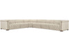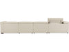 The Savion Deux 6 Seat Sectional in Aries Beach fabric offers three power recliners and seven power headrests, delivering both comfort and durability. Featuring dark wood accents, chesterfield tufting, and copper nail trim, this sectional seamlessly blends traditional elegance with modern functionality. Its smooth power reclining seats make it perfect for living rooms that prioritize both comfort and style.