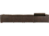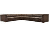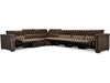 This Savion Deux 6 Seat Sectional, upholstered in rich West Saddlewood leather, offers four power recliners and seven power headrests. With classic chesterfield tufting, copper-toned nail trim, and dark wood accents, this sectional is the epitome of luxurious seating. The discreetly concealed power reclining function ensures comfort without sacrificing style, making it ideal for larger, sophisticated living spaces.