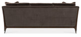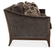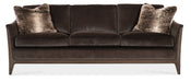The epitome of mid-century elegance with an updated design, the Sophia Sofa has flared wood legs and frame finished in the deep translucent tone of Caviar on rich Cathedral Cherry Veneers. Sophia is upholstered in Merrimac Mink fabric with topstitch and welt trim, complemented by two 19-inch fluffy accent pillows in the Full Moon Timber fabric.