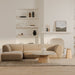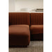 The Zandro sectional brings a tasteful touch to any room with its plush velvet upholstery, a soft touch with subtle elegance. Its vertical channel detailing along the back and arms adds a sophisticated visual texture, while the warm, neutral color allows it to blend seamlessly into any décor without overwhelming.