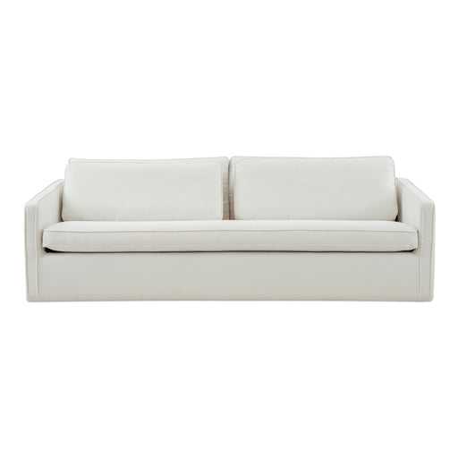 The Phoebe sofa in ivory embodies transitional elegance with its minimalist form and tapered arms. The linear form is softened by a plush, feather-...