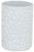 Inspired by modernist sculpture, this contemporary accent stool is an homage to the power of art. Ideal for any outdoor or indoor living space, it features bold irregular patterned sides and a minimalist matte white finish, creating an instant aura of forward-thinking flair.