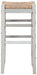 Bring the vintage casual vibe you love to the kitchen with this bar stool. A stylish seating solution in a rubbed-through finish, this charming stool completes your dining space with ease. The woven seat and wood stretchers create an effortlessly beautiful look with endless possibilities.