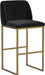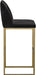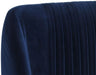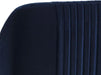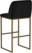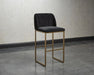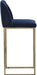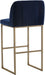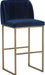 A modern barstool from that offers style and comfort. Features delicate ruching on the rounded seatback and exposed antique brass legs. Stocked in sapphire blue, shadow grey fabric and polo club muslin performance fabric. Performance fabric is moisture repellent, stain resistant and easy to clean. Suitable for various dining, kitchen and bar spaces of all sizes.