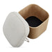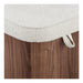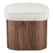 The Sonny stool elegantly articulates the luxury of simplicity with an ash veneer base and a lift top that unveils discreet storage. Upholstered in flecked oatmeal fabric, the plush seat contrasts the wood's solid nature with piping that traces its contours. Curved corners soften the stool's silhouette, creating a serene yet functional piece.