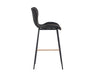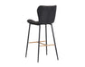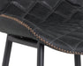 A stylish barstool featuring a sculpted diamond-stitched seat and exposed zig-zag stitching along the seat frame. Stocked in antique black faux leather with black steel legs. Stretchers in a champagne gold painted finish complete the look. Suitable for various dining, kitchen and bar spaces of all sizes. Handle With Care: This design has been crafted with faux leather. Faux leather is manufactured to reflect the natural characteristics of leather; as such, colour variations, markings, wrinkles, grooves, and light scratches are appreciated characteristics. No two pieces will be alike. Visit our Product Care page for more information on how to ensure the lasting beauty of this piece.