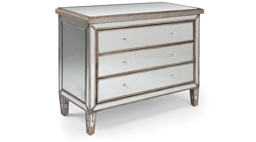 Maggiore Dresser Items AvailableDresser: 38" L × 16" D × 29" H Features Elegant mirrored chest 3 drawers Clear acrylic knobs Solid wood fra...