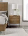 Inspired by downtown urban living, the Chapman Three-Drawer Nightstand combines craftsman style with modern design elements. Constructed of White Oak Veneers in a warm brown Sorrel finish, the nightstand is accented by jewelry-like forged pewter custom hardware and is on raised, slender metal legs with a stretcher in a cool contemporary pewter color. The 3 drawers have soft-close drawer guides. There are 2 USB ports for electronic connections and a wire clip on the back.