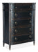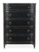 Capturing a Southern vintage vibe, the Charleston Five-Drawer Chest is crafted of Cherry Veneers with a Solid-Wood Edge top. The five self-closing drawers have cherry-finished interiors, the top drawer has a removable felt liner and the bottom drawer is cedar-lined. The chest has antique-pewter round knobs and ring pulls and is finished in the vibrant Black Cherry with subtle distressing, exemplifying the heirloom nature of the collection.