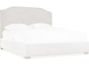 The Driftwood California King Upholstered Bed in Buckboard combines fabric upholstery with sturdy wood feet. It includes the headboard, footboard, and rails, with the headboard also usable as a stand-alone piece.