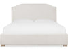 The Driftwood Queen Upholstered Bed in Buckboard features soft fabric upholstery complemented by warm wood feet. This bed includes the headboard, footboard, and rails, with the flexibility to use the headboard separately.