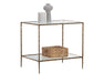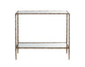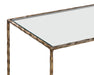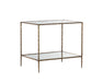 The Emine Nightstand shines a spotlight on the rustic beauty of hand-hammered metal. Crafted by artisans in India, this nightstand features an antique brass iron frame with a tempered glass top and shelf. Made in India. With refined craftsmanship, this design was brought to life by skilled local artisans. Due to the nature of handcraftsmanship, unique imperfections such as fissures, markings and variations in colour and shape are welcomed and appreciated characteristics for a truly one-of-a-kind piece.