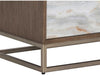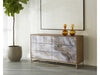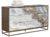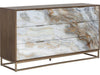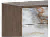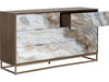 Incorporate a touch of extravagance to any bedroom space with this brilliant dresser that is full of rich detail. Features a brown wooden base in an oak veener with printed acrylic doors that share a likeness to mother of pearl. Ample storage is available inside the six cabinets which includes soft close doors. Completed with steel legs in a brass finish. Anti-tip kit included. Pairs well with the Fuentes nightstand.