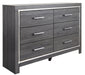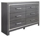 Modern gray finish with replicated wood grain. Cases and bed are accented with faceted chrome details. Large scaled chrome handle with faceted details. Headboards are accented with LED lighting and include a remote for color and brightness options. Included remote holder discreetly keeps light remote accessible. Headboards are accented with faux crystal tufted black upholstery. Side roller glides for smooth operating drawers. Drawer interiors are lined with a faux linen laminate for a clean finished look. Both king and queen panel beds have a panel footboard (54,56) and storage footboard option (54S, 56S). Queen (57) and king (58) headboards can attach to a bolt-on metal bed B100-31 or B100-66 respectively. Both USB and Qi wireless charging options are provided with the night stand. Queen (54, 54S) and king (56, 56S) can use -95 platform rails and require B100-13 (queen) or B100-14 (king) roll slats eliminating the need for a box spring. Safety is a top priority, clothing storage units are designed to meet the most current standard for stability, ASTM F 2057 (ASTM International). Drawers extend out to accommodate maximum access to drawer interior while maintaining safety.