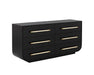 Fluid lines and gentle curves make up the modern silhouette of the Tarrant Dresser. Raffia wrapped handles add an understated touch to the black oak veneer base.