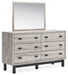 Craft a contemporary hideaway without breaking the bank. An elegant juxtaposition of refined neutral hues, this two-toned dresser with mirror brings sleek style to your space. Matte black drawer handles enhance the sheer simplicity of its profile. With this storage piece, a bedroom brimming with luxury has never been more attainable.