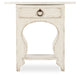 In a classic, charming design with a nostalgic flair, the Americana One-Drawer Oval Nightstand has ornately shaped legs that form the shape of a keyhole on the front, sides and back. Crafted of Oak Veneers, it is finished in the timeworn white Daisy finish, with drawer interiors in the warm Honey finish. The drawer is self- closing.