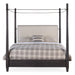 It’s the bed that dreams are made of. The Big Sky Corbel Poster Bed is finished in the dramatic Charred Timber with a suspended linen upholstered headboard surrounded by decorative nail heads and an oxidized brushed bronze metal canopy. The Charred Timber finish contrasts with the Saxony Porcelain performance fabric on the headboard. Includes headboard, footboard and rails.