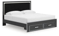 Zuraleus - King Upholstered Panel Platform Storage Bed - Black