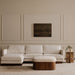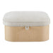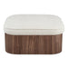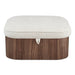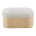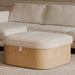 The Sonny ottoman elegantly articulates the luxury of simplicity with an ash veneer base and a hydraulic lift top that unveils discreet storage. Upholstered in flecked oatmeal fabric, the plush seat contrasts the wood's solid nature with piping that traces its contours. Curved corners soften the ottoman’s silhouette, creating a serene yet functional piece.
