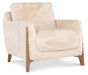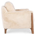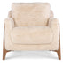 Get the laid-back feeling of staying in your bath robe all day with the Cynthia Chair, covered all over in a cozy furry fabric called Yakety Yak Sand. The wood legs and wood trim on the arm fronts have a light natural finish.