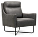 Sloping arms, a pub back and a sculptured silhouette distinguish the sleek modern Efron Club Chair. Featuring an interlocking “X” motif metal base, the chair is upholstered in the semi-aniline top grain Rangers Gravel leather.
