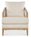 The Enveyed Stationary Chair offers a casual and organic aesthetic with a decorative oak frame finished in Cashew. Upholstered in durable Classic Linen performance fabric, it provides a blend of comfort and style, perfect for modern living rooms. Featuring a high-density foam core wrapped in virgin polyester fibers, this chair ensures luxurious seating while maintaining its sleek, biophilic design. Ideal for interior designers and homeowners looking to incorporate natural elements into their decor.