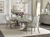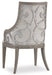 Pamper yourself in this arm chair that is as comfortable as it is opulent, featuring a luxe scrolled fretwork overlay on the back. The inviting fabric seat and back is upholstered in Shimmering Boucle, and the chair is finished in Epoque, a greige with shimmer on Oak veneers.