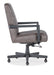 High-tech function blends with homespun comfort in the Shadow Executive Chair, featuring a quilted leather design on the seat and back, along with adjustable height, swivel motion and casters. The wood frame is finished in a dark gray, and the Ankur Dark Brown upholstered cover is a semi-aniline top-grain leather.