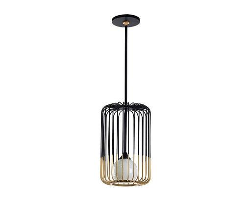 This angular wire shade boasts an antique brass finish.Specifications Base Material: Metal Body Finish: Gold powder coating Shade Material: Meta...
