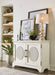 In a classic, charming design with a nostalgic flair, the Americana Two-Door Chest features a carved oval motif on the door fronts and a softly-shaped base. The two doors have magnetic catches and one adjustable wood shelf behind with a Honey-colored interior. The chest is finished in the time-worn white Daisy over Cathedral Oak Veneers, representing the natural wear one might expect of pieces passed down through the family over time, revealing the rich oak character beneath. Metal alloy bar pulls are in an antique bronze finish.