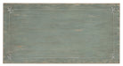 - Finish: Antique green finish with distressing and rub-through. The accent chest also features a white finished scroll pattern. Metal alloy tear-drop pulls in an antique pewter finish with white hang-up.