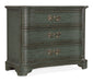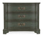 Capturing the vintage charm of the coastal South and the tropical craftsmanship of the West Indies, the Charleston Three-Drawer Accent Chest has scalloped legs and dramatic decorative pulls in a carved leaf motif in an antique bronze color. Crafted of Maple Veneers, the chest is finished in Gullah Green, a deep teal-blue reminiscent of the mysterious waters within wetlands and marshes of the American South. The 3 self-closing drawers have an interior color matching the exterior.